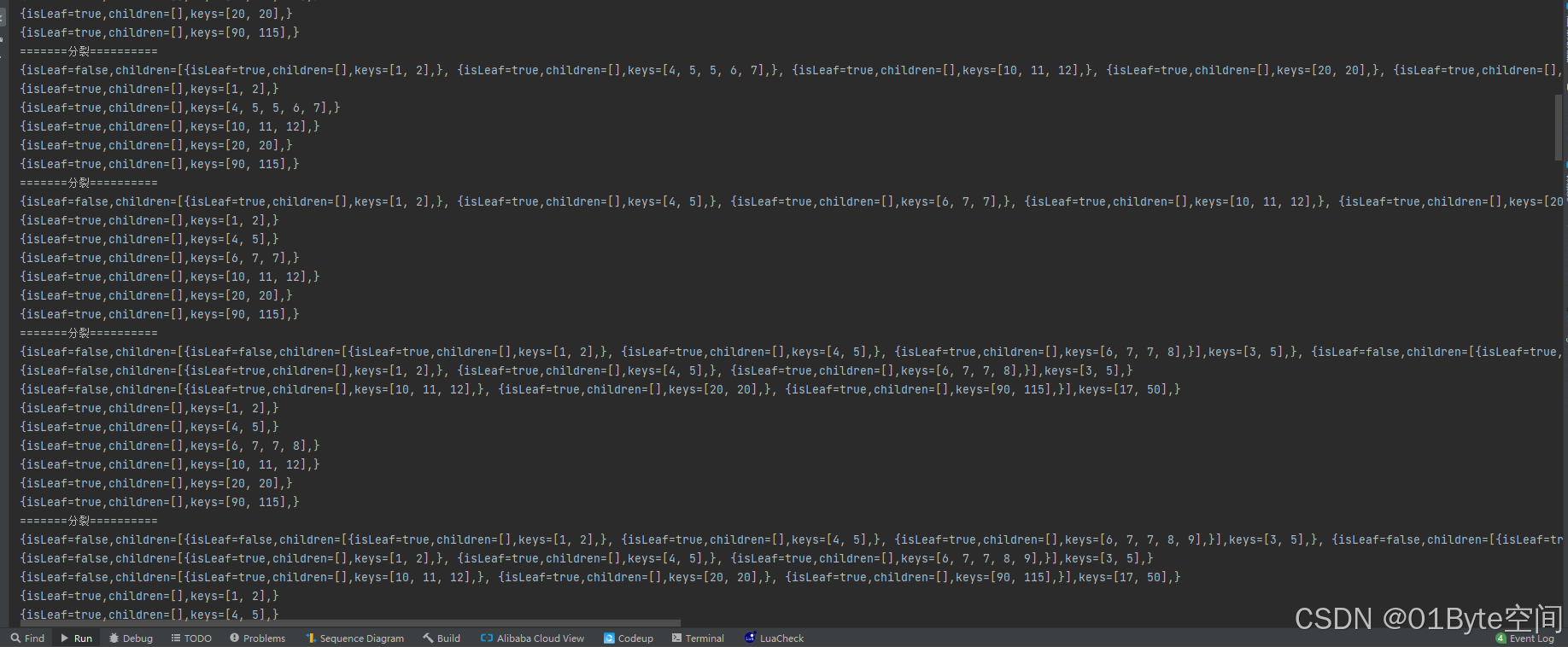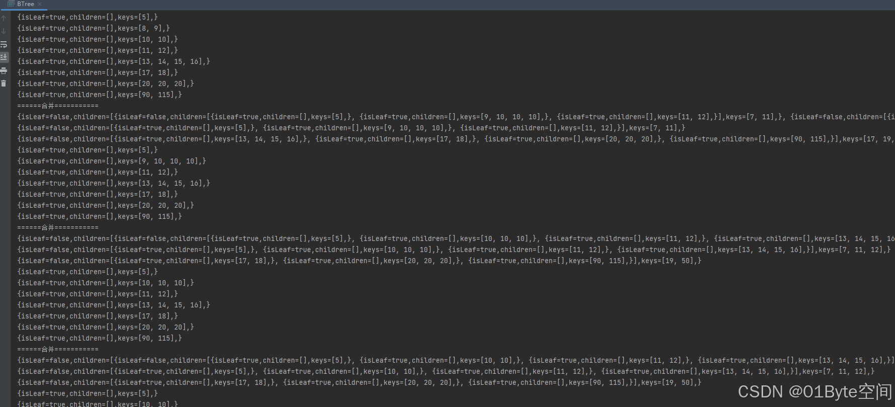 btree.levelOrderTraversal();//打印可以看到分裂和合并