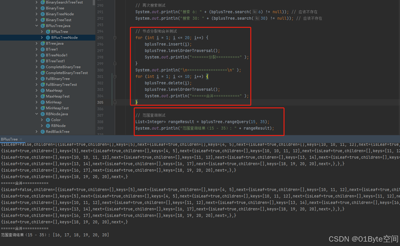 * 经过检查,上述Java代码实现的B树基本功能(插入、删除、搜索、节点分裂和合并)在逻辑上是正确的,但有一些细节需要注意和改进: