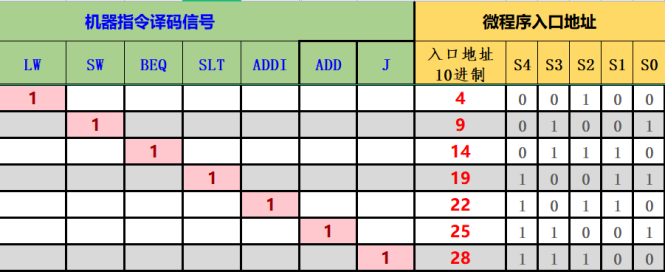 控制信号根据课本上填写,需要注意的是下址字段需要填写。