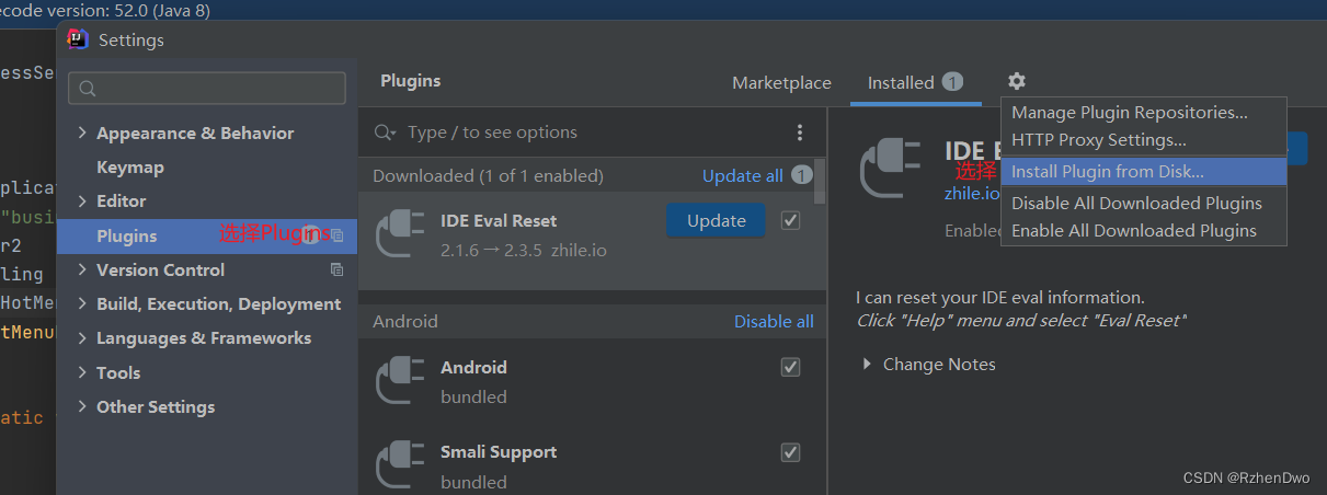 在idea中安装插件idea eval Reset,应用市场如果搜不到就安装离线的