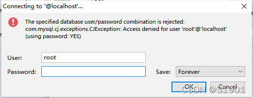 The specified database user/password combination is rejected: The specified database user/password combination is rejected