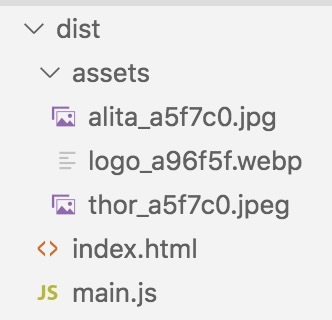 当本地资源较多时,我们有时会希望它们能打包在一个文件夹下,这也很简单,我们只需要在 url-loader 的 options 中指定 outpath,如: outputPath: 'assets',构建出的目录如下: