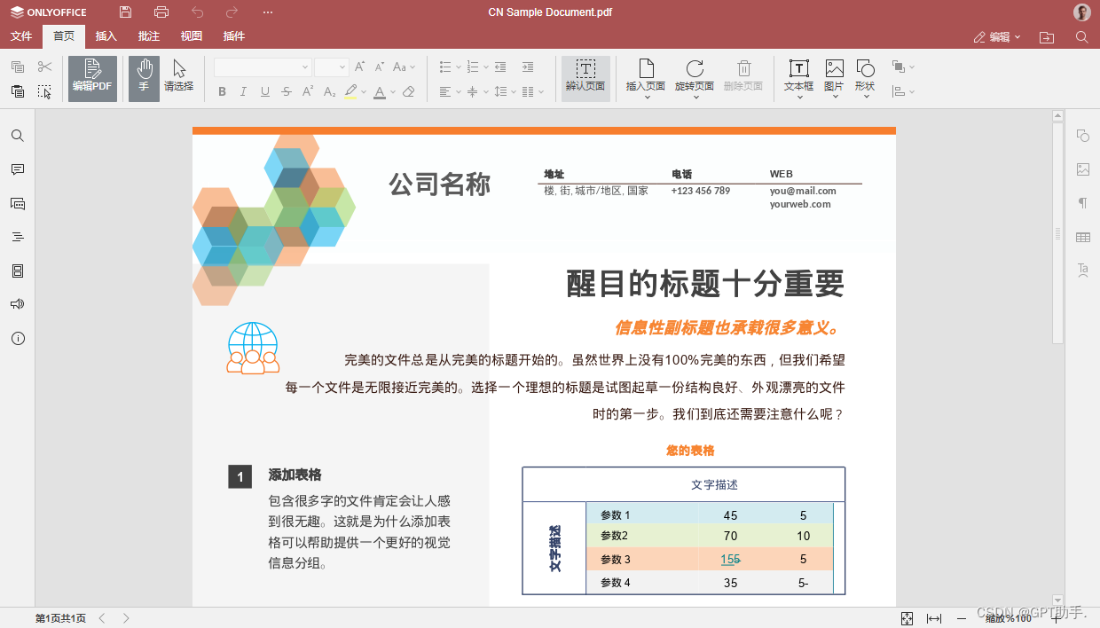 - 表格:用户可以在PDF中插入表格,并调整行高和列宽,以及编辑表格内容。