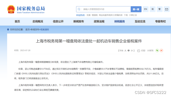 据国家税务总局在7月23日发布的税案通报:上海税务局根据精确的线索分析,查处了上海某汽车销售有限公司偷税漏税金额达5332.79万元(增值税和消费税),最终根据相关规定,处以追缴加罚款共计1.06亿元。