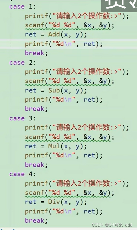 还可以使用函数指针数组进行优化代码,使其更加简洁,且便于以后添加此简单计算器的功能。