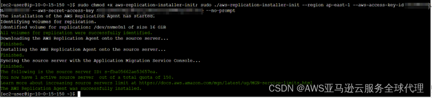 创建一个角色或者用户,拥有AWSApplicationMigrationAgentInstallationPolicy或者AWSApplicationMigrationFullAccess AWSApplicationMigrationEC2Access权限,创建访问密钥或者临时凭证