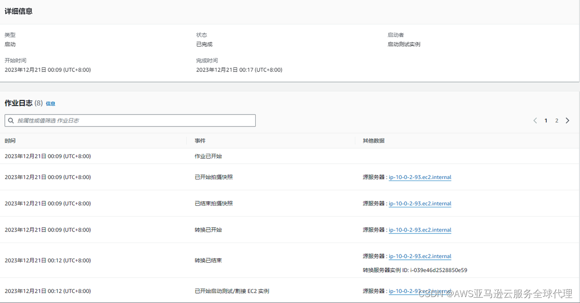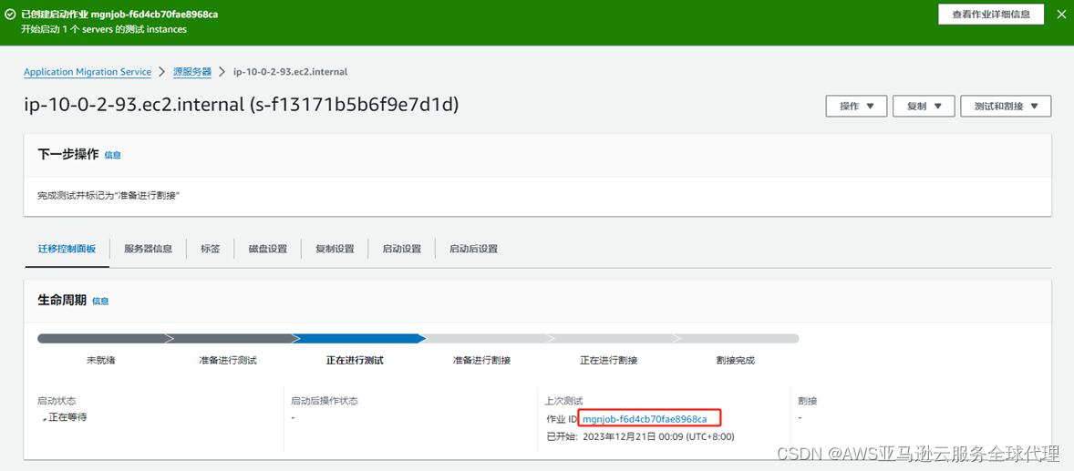 启动测试实例会创建一个job作业,可以点进去查看进度和状态