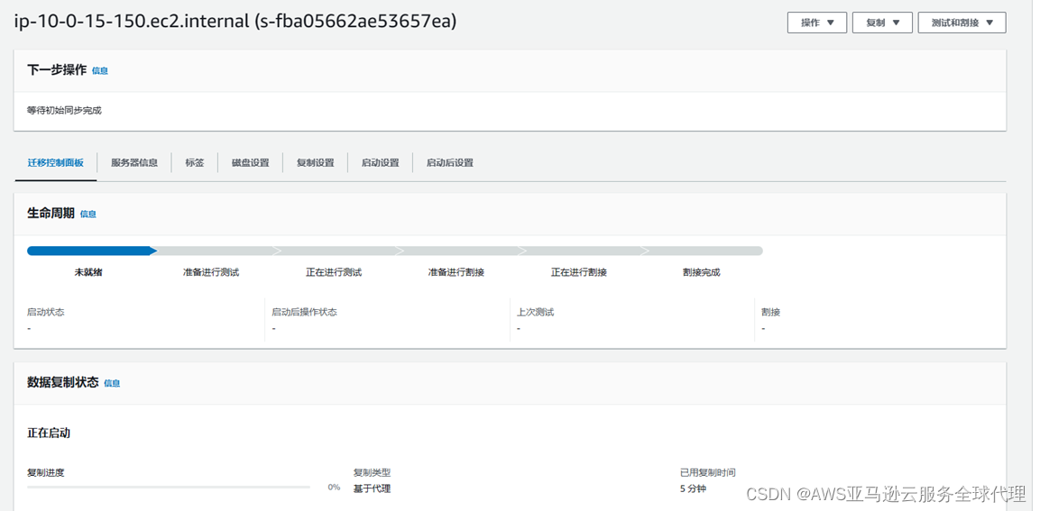 点进来,就可以看到生命周期和数据复制状态等信息。等待初始同步完成可能需要25分钟