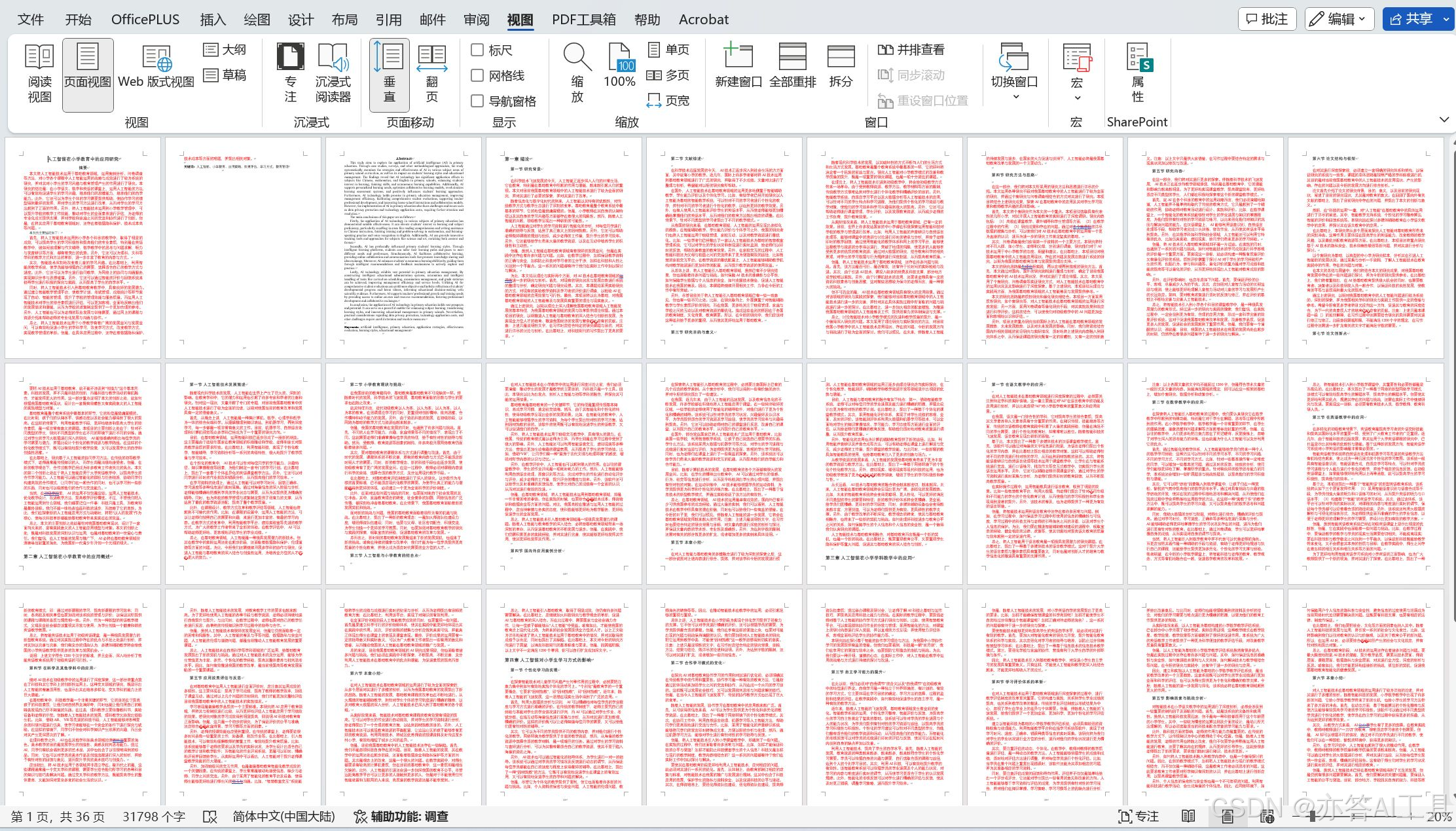 我拿一篇chatgpt生成的论文做个案例,下面是下载好的降AI之后的全文缩览图,可以看到,98%的文字都标了红色,也就是被修改过。
