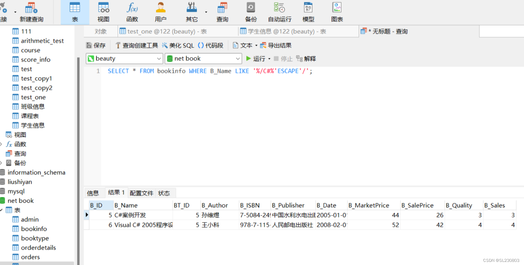 Navicat插入 替换 更新 删除 使用技巧 3.更新update ,set为修改的位置,set name=444为修改test里字段name为444,where name ='333'意为将test表中的名字'333'修改为444。1.插入 insert into 目标表➕字段 select ➕字段 from 源表 例:在学生信息表里插入test的字段,注意:源表字段和目标表字段相同。这里的test表是122数据库里的表与下面的test表不同,下面的test表来自test _Latin1数据库。