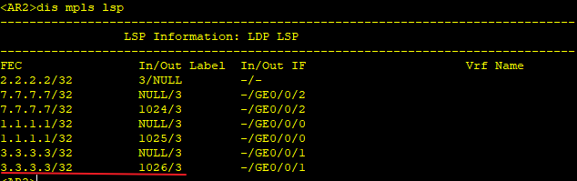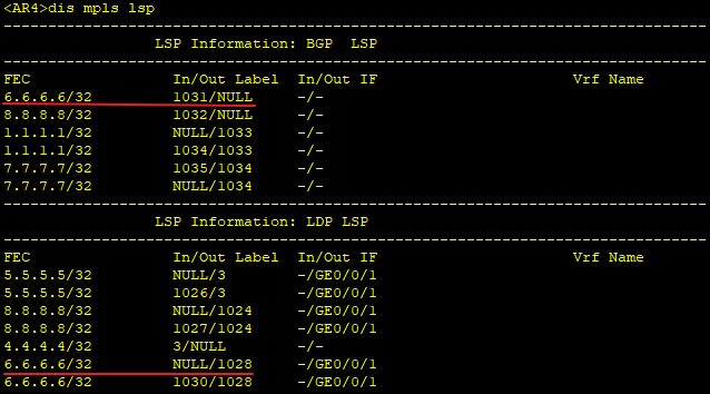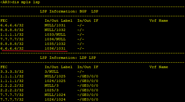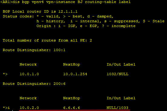查看BGP/MPLS路由标签