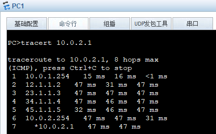PC1访问PC2,查看路径