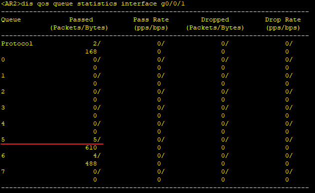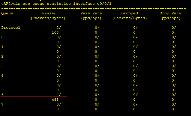 在AR1上10.1.1.1 ping 3.3.3.3,此处只能证明走了6号队列