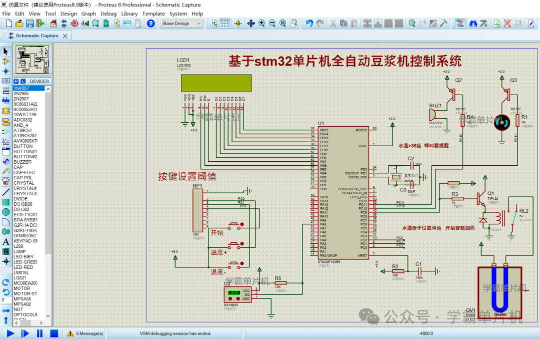 185-基于stm32单片机电热水壶自动加热水温控制系统Proteus仿真+源程序