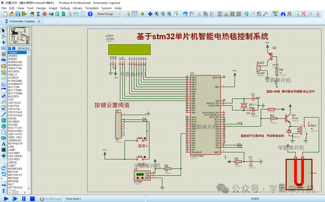184-基于stm32单片机智能电热毯控制系统Proteus仿真+源程序
