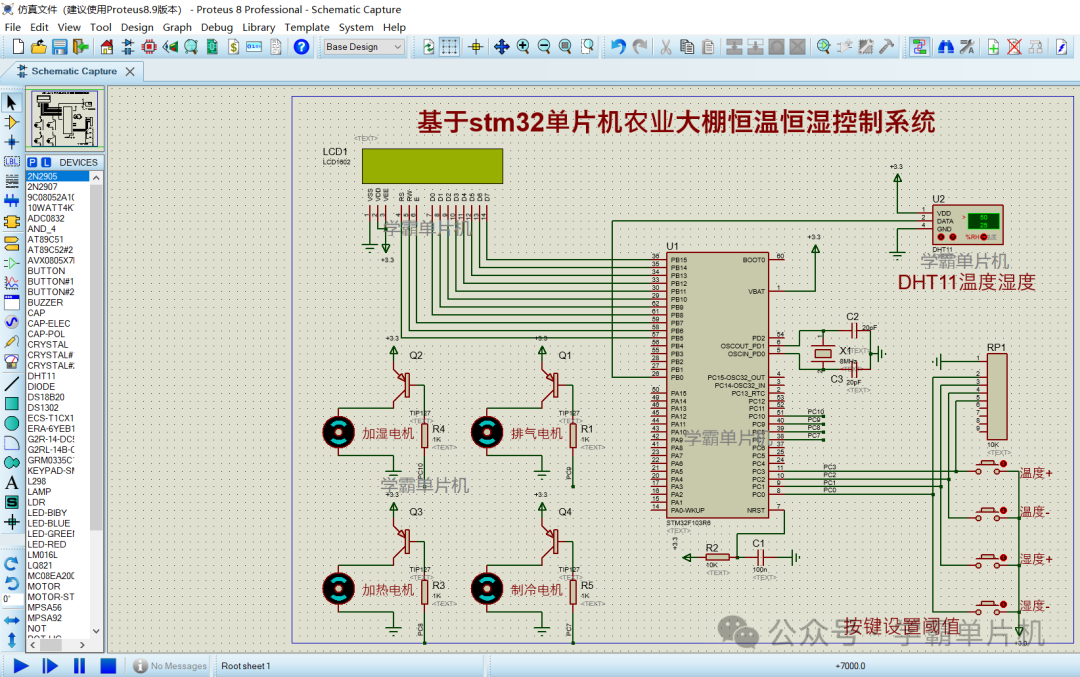 179-基于stm32单片机农业大棚恒温恒湿控制系统Proteus仿真+源程序
