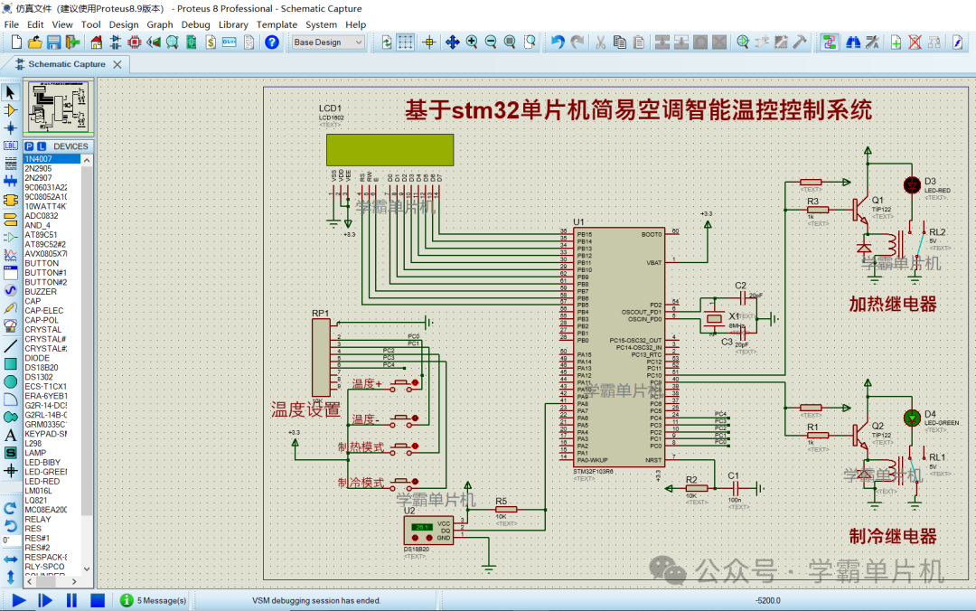 177-基于stm32单片机简易空调智能温控控制系统Proteus仿真+源程序