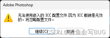 解决QT插入图片警告:qt.gui.icc: Unsupported ICC profile class 70727472这是一个警告,对程序运行不会产生影响。这个警告的意思是:开发者在设计UI界面的过程中,使用了带有ICC配置项的.png图片文件,但事实上,带有ICC配置项的.jpg等其他格式的图片也会报出这个警告。我们简称带有ICC配置项的图片为“错误图片”。只要.qrc资源文件中有一个“错误图片”,就会在终端窗口中不停地弹出qt.gui.icc: Unsupported ICC profile