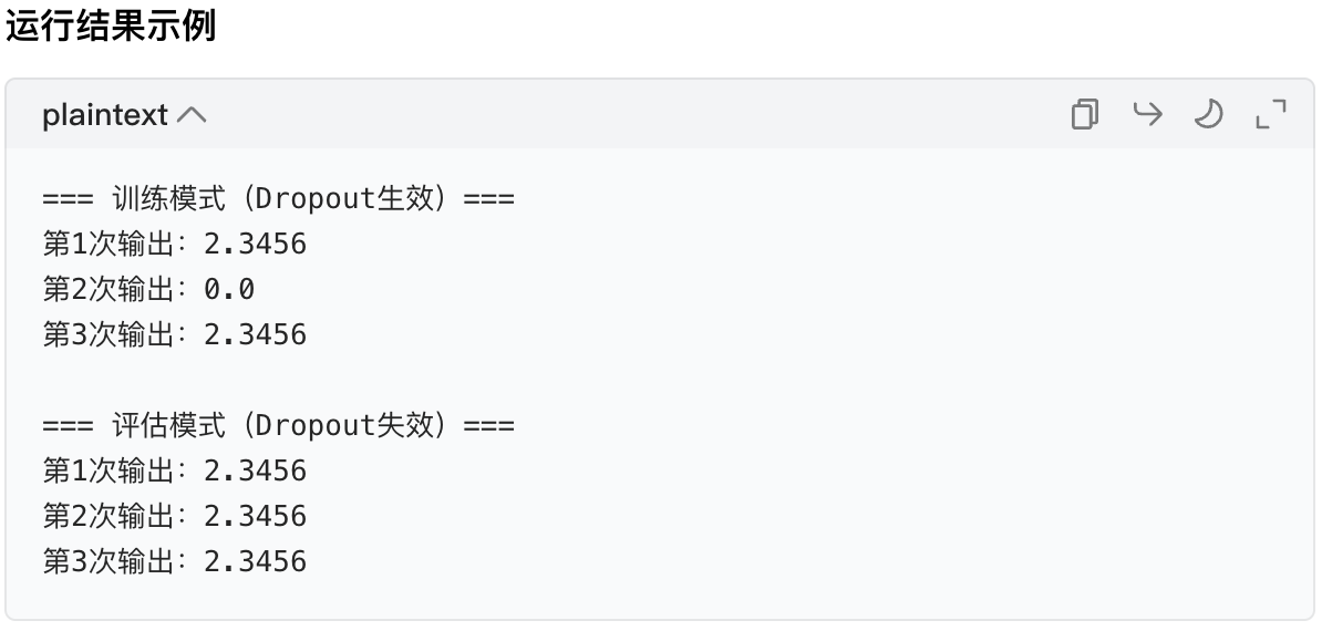 代码实操:看 Dropout 在训练 / 评估模式下的差异