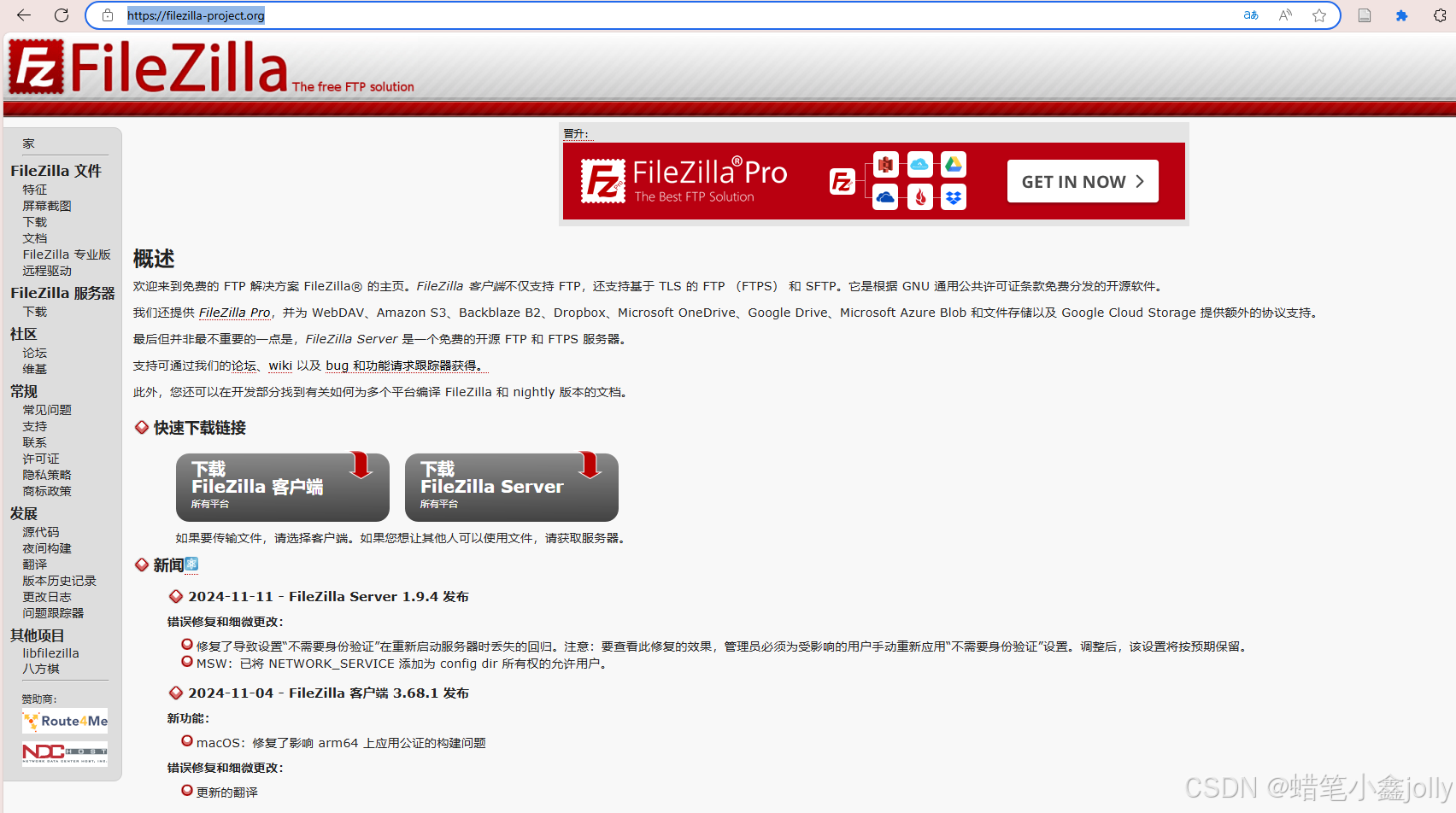 我下载的是FileZilla,链接如下:FileZilla - 免费的 FTP 解决方案https://filezilla-project.org/