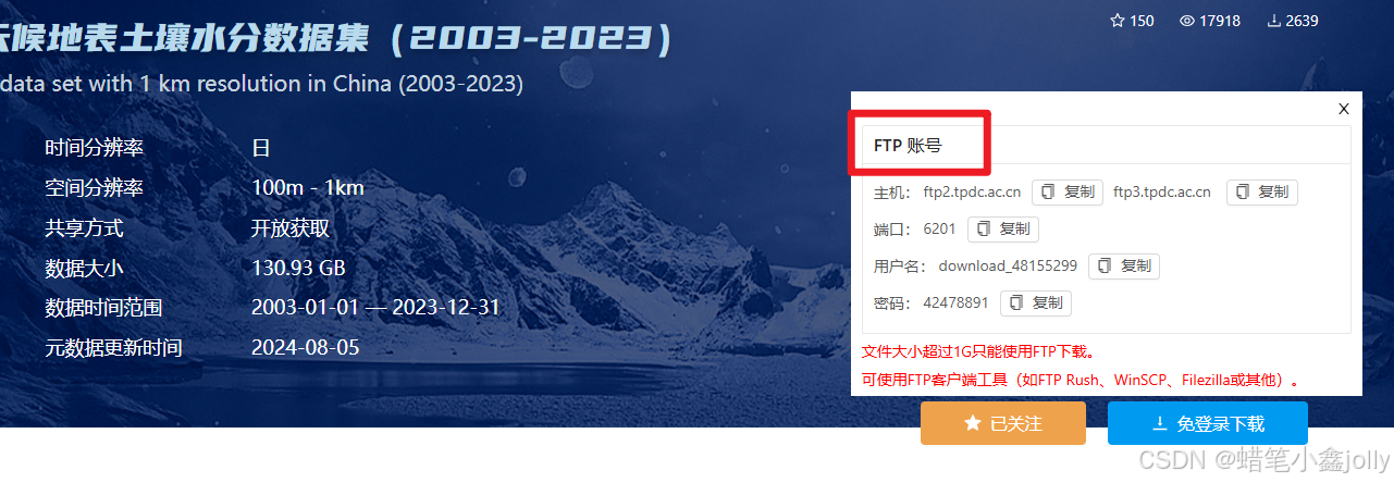 今天我需要用到高分辨率的土壤水分数据,看到其他文章中描述有1km土壤水分数据的下载可以在国家青藏高原数据中心中得到,所以想试着去下载一下,就有了这篇文章。