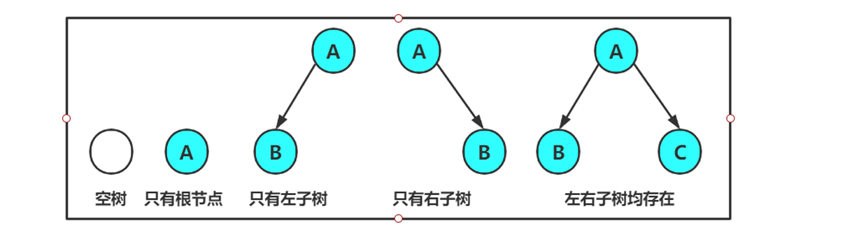 对于任何二叉树都是由以下几种情况符合而成: