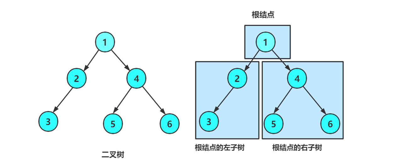 节点个数就是根加上左右子树节点的个数,左右子树又可以看成一棵新的树,分成新的左右子树和根,最终分到只剩下一个,相加就得到了节点个数。
