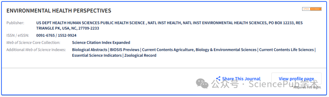 【期刊官网】https://ehp.niehs.nih.gov/journal/ehp