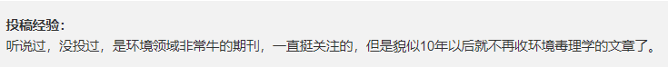 【作者1】听说过,没投过,是环境领域非常牛的期刊,一直挺关注的,但是貌似10年以后就不再收环境毒理学的文章了。