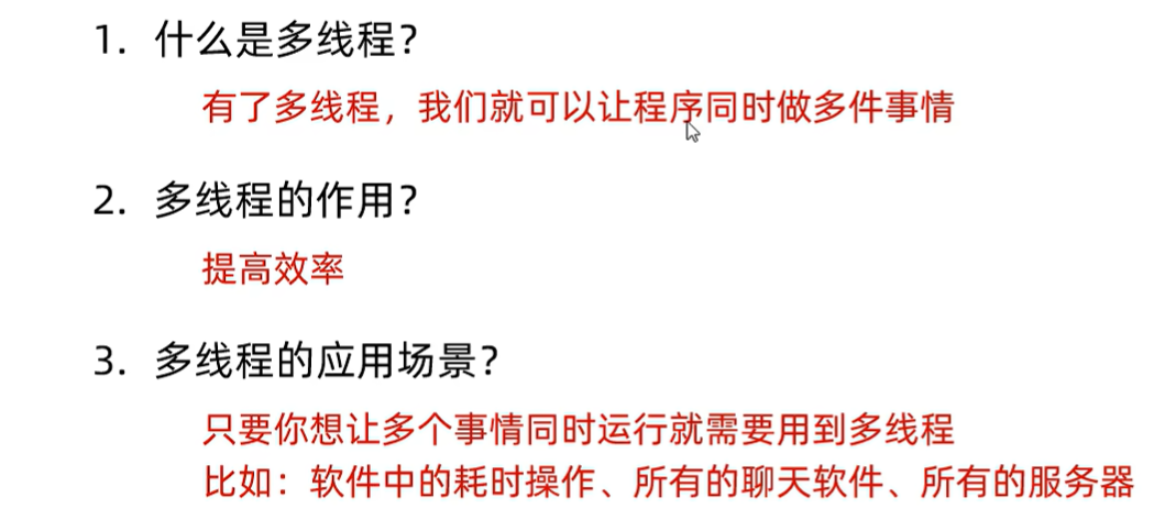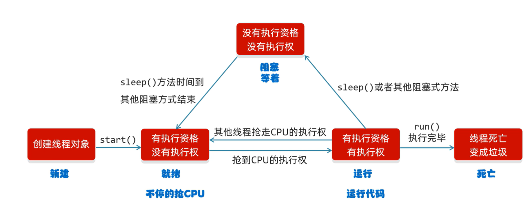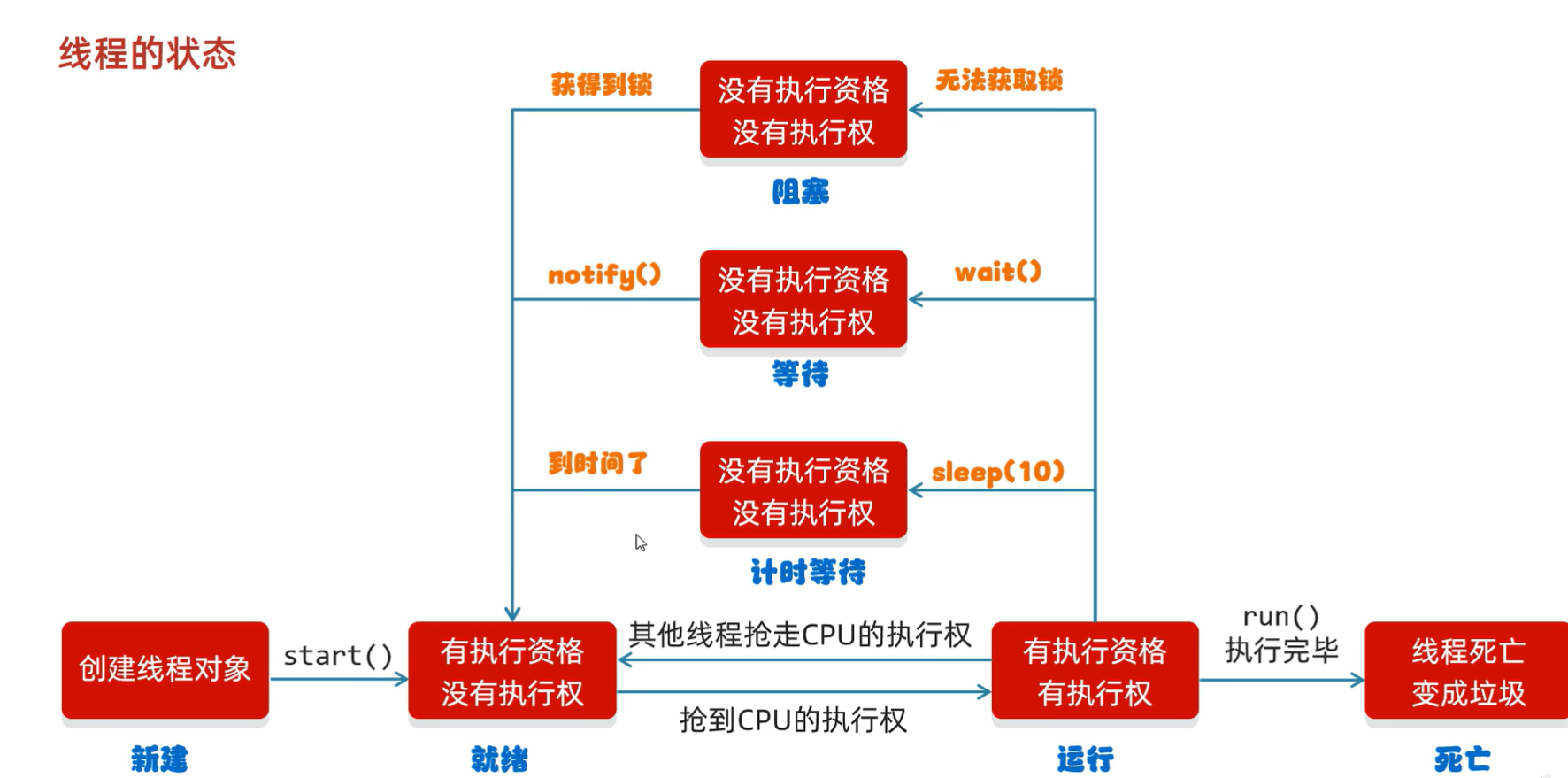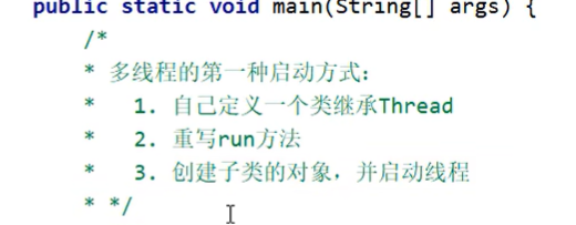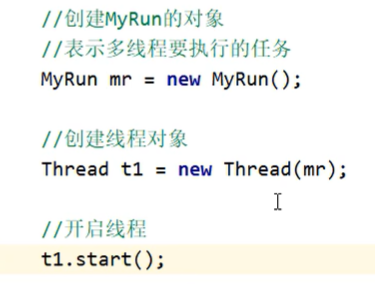 开启线程:用多线程的对象调用start方法开启,不能直接调用run方法