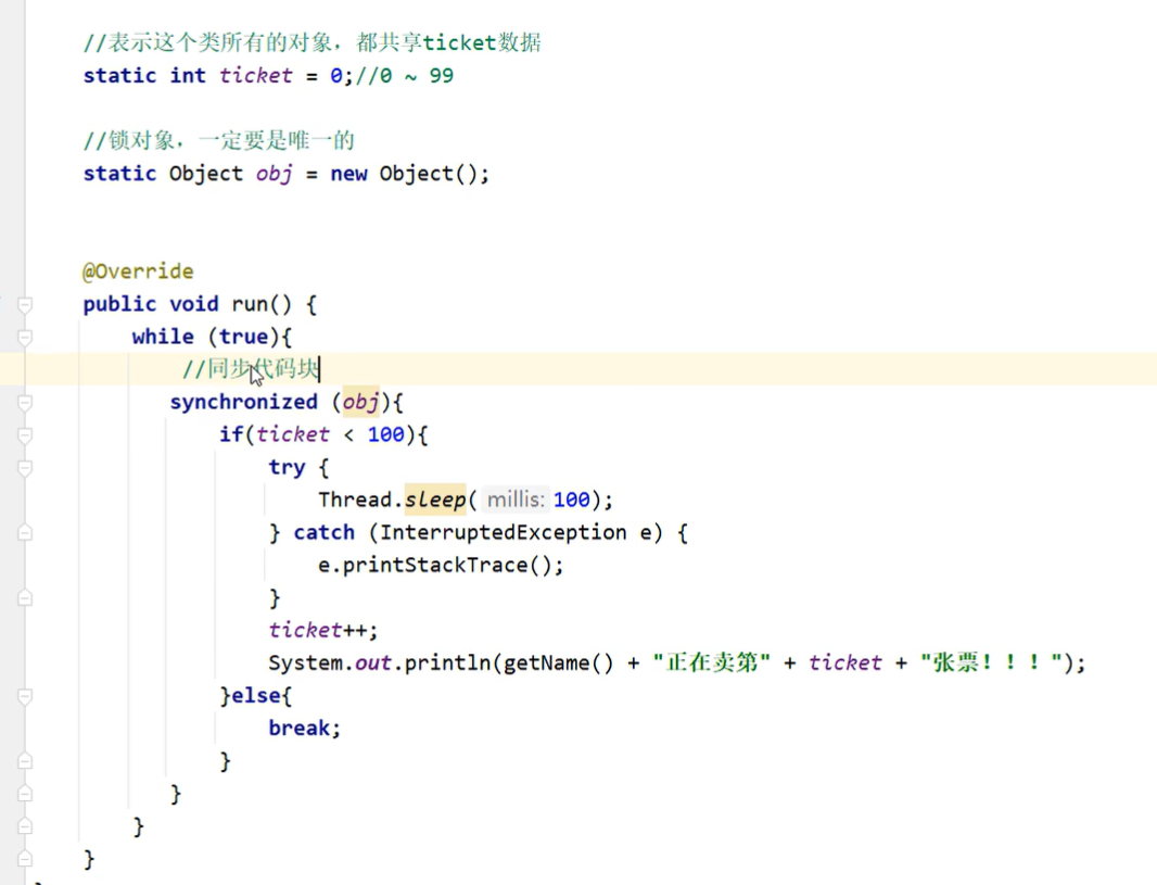 锁对象一般用当前类名的字节码文件对象:类名.class