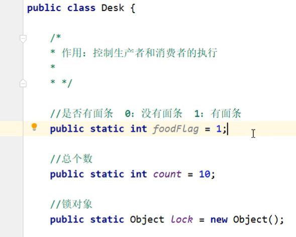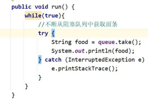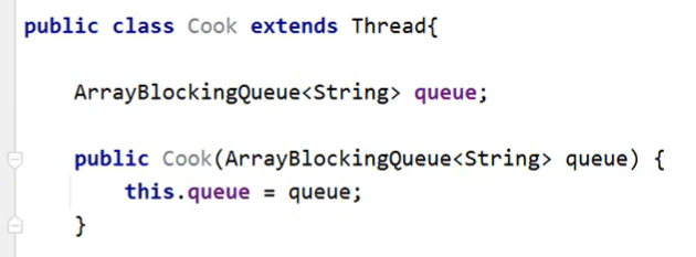 阻塞队列定义在测试类中,在创建对象时再把阻塞队列传给生产者和消费者