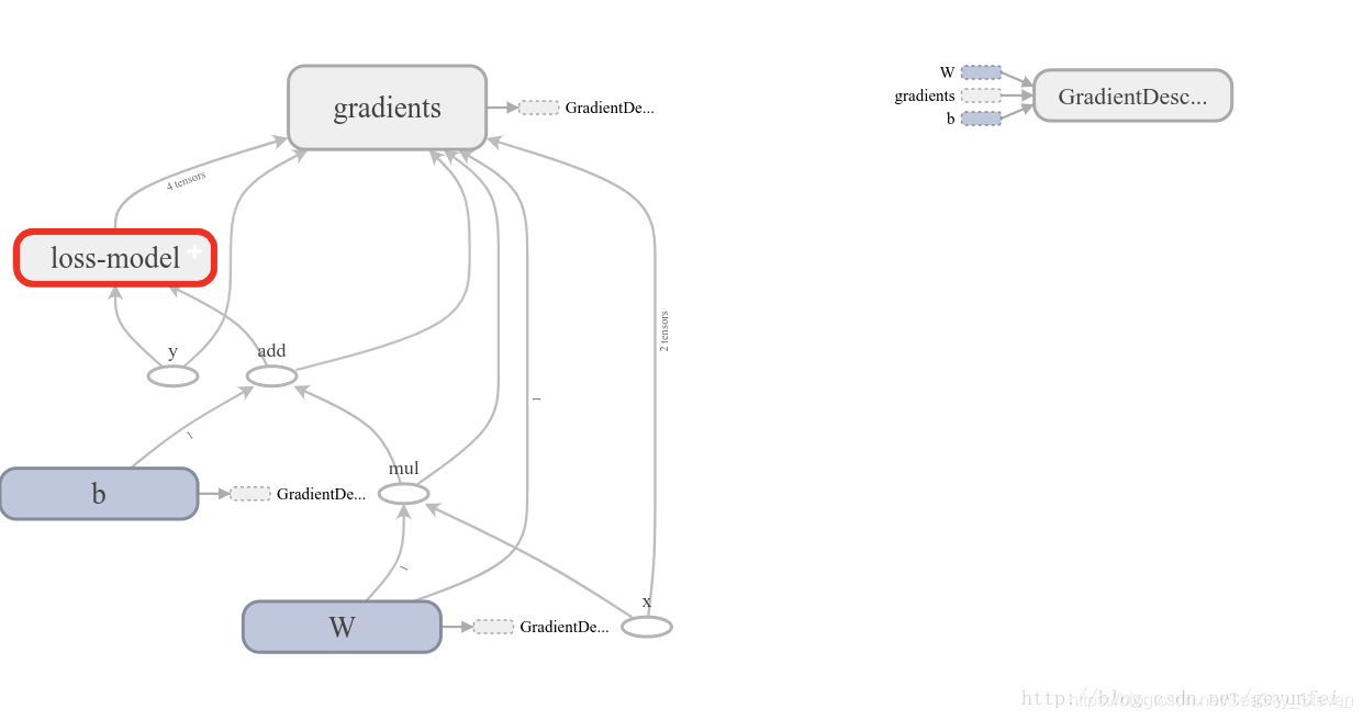 在 GRAPHS 页面可以看到我们构建的模型的数据流图: