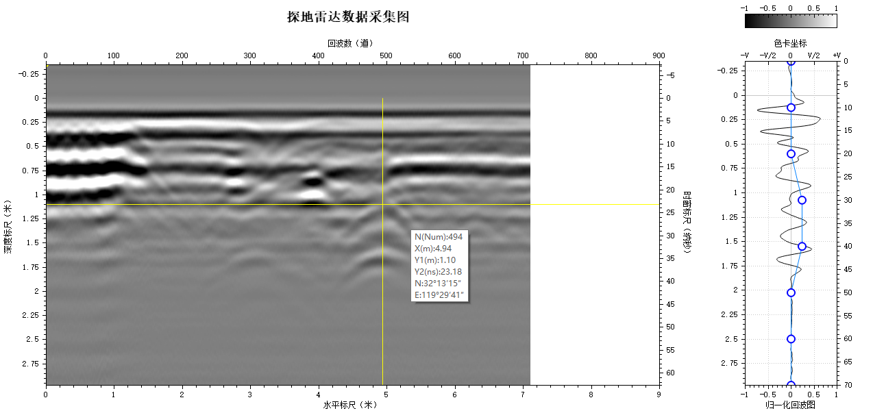 校准参数:根据探测目标深度调整时窗(深度越大,时窗设置越长);信号弱时适当提高增益(但需避免增益过高引入杂波);通过预扫描测试,选择最优发射频率(如浅层探测用高频,深层用低频)。
