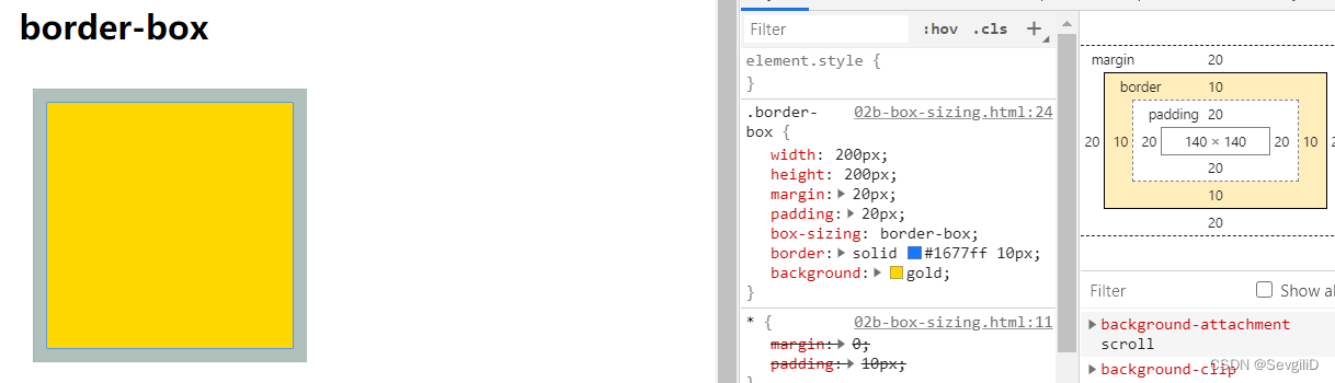 width减去(border +padding) 的值。 - inherit: 指定 box-sizing 属性的值,应该从⽗元素继承。