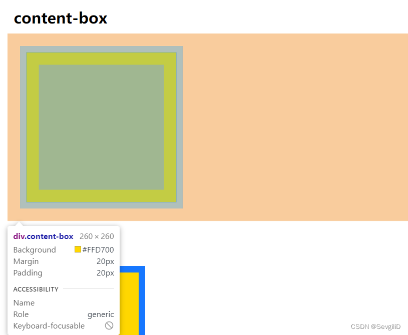 - content-box: 默认值。如果你设置⼀个元素的宽为 100px,那么这个元素的内容区会有 100px 宽,并且任何边框和内边距的宽度都会被增加到最后绘制出来的元素宽度中(即