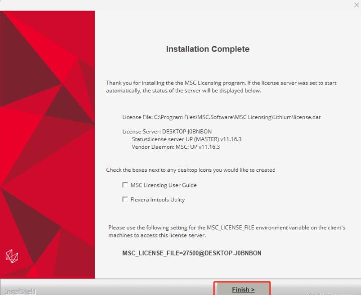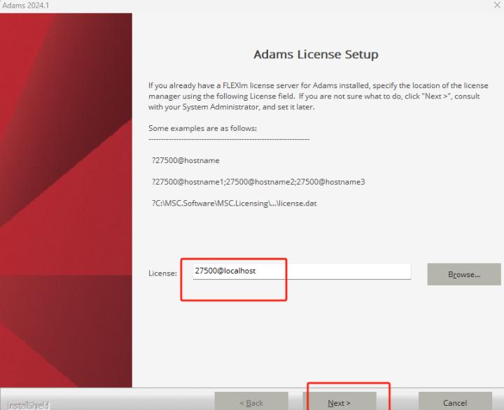10.在“License"后框内输入【27500@localhost】,点击【Next】