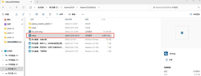 1.把上面保存、下载的Adams 2024安装包解压打开