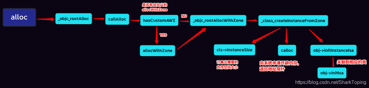 - 其他:zone存在时、走 obj->initIsa(cls) 方法