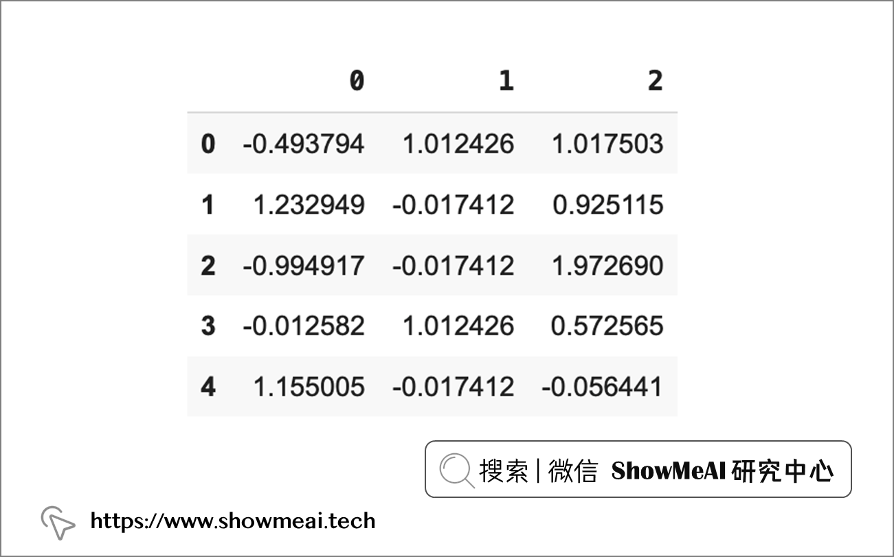 print(customers_normalized.mean(axis = 0).round(2)) # [0. -0。 0.]