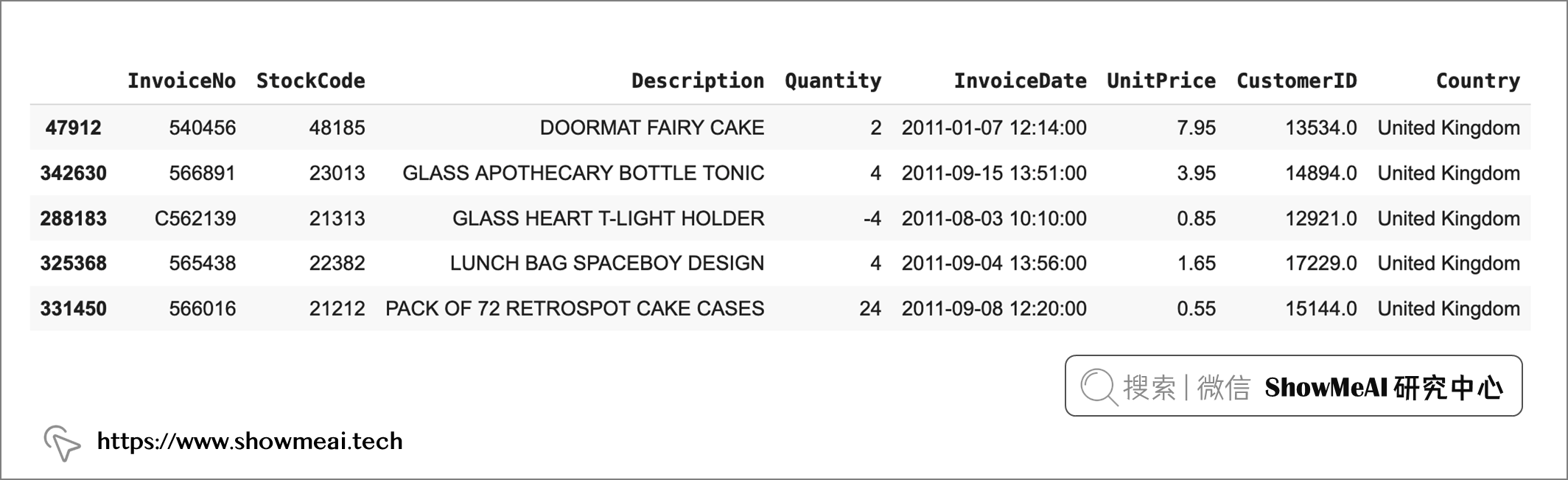 我们需要先结合业务场景收集数据,我们在本案例中使用的是 🏆Online_Retail在线零售数据集,大家可以在ShowMeAI的百度网盘中下载获取数据。