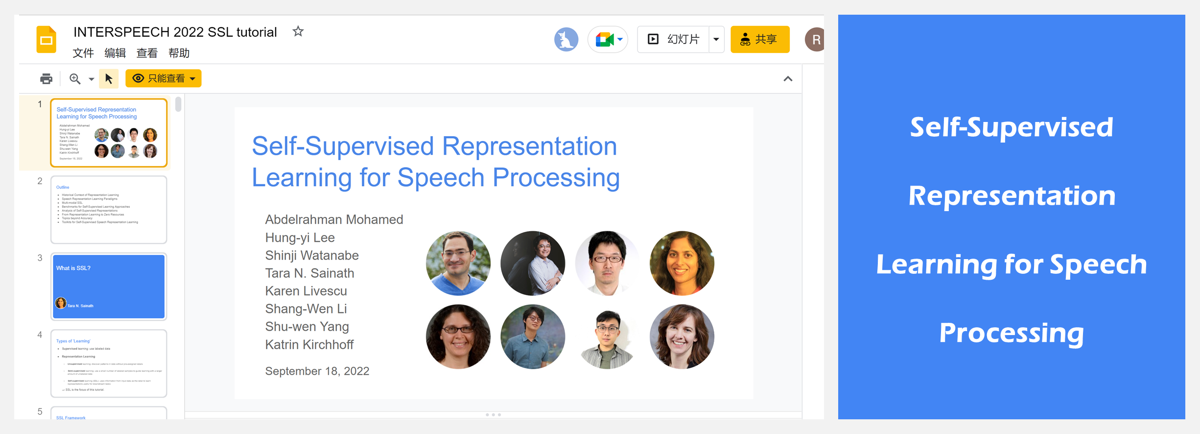 👍 『Self-Supervised Representation Learning for Speech Processing』(Interspeech 2022 Tutorial)面向语音处理的自监督表示学习