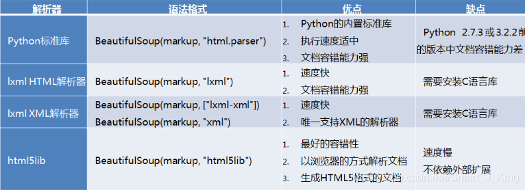 lxml解析器比较常用。