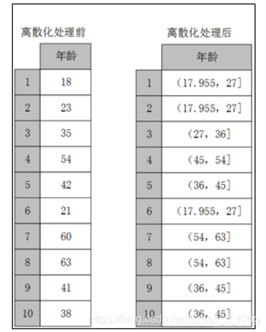 某些模型算法,特别是某些分类算法如ID3决策树算法和Apriori算法等,要求数据是离散的,此时就需要将连续型特征(数值型)变换成离散型特征(类别型)。