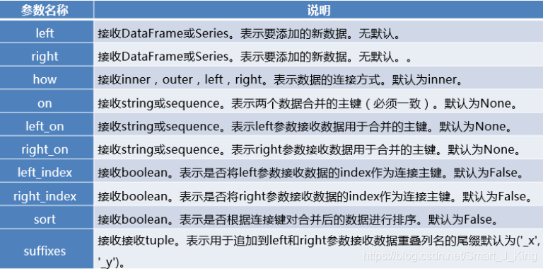 和数据库的join一样,merge函数也有左连接(left)、右连接(right)、内连接(inner)和外连接(outer),但比起数据库SQL语言中的join和merge函数还有其自身独到之处,例如可以在合并过程中对数据集中的数据进行排序等。