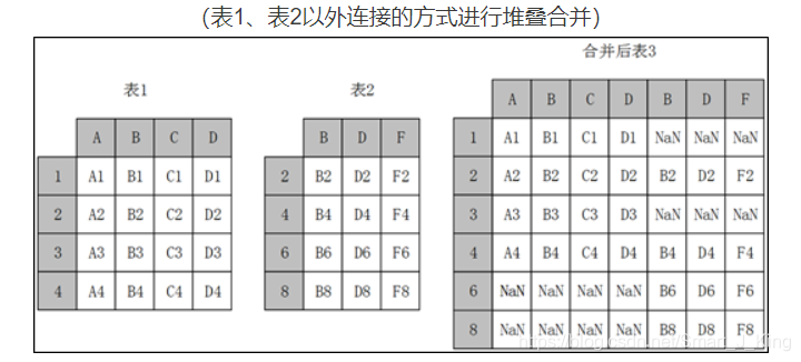 不论join参数取值是inner或者outer,结果都是将两个表完全按照Y轴拼接起来。