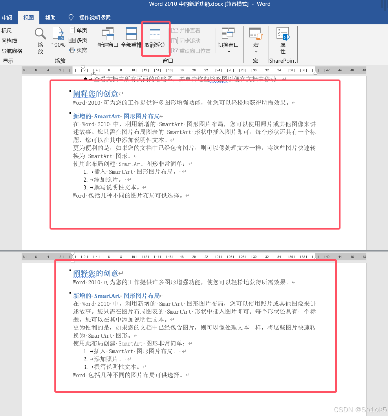 - 不能选择第一行或第一行中的单元格作为拆分点。