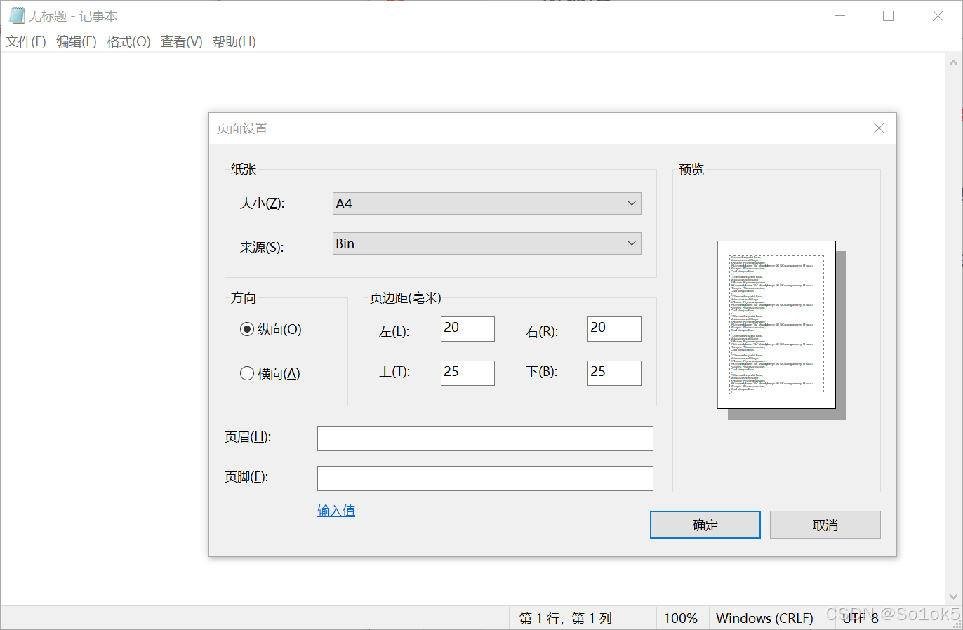纸张方向:默认情况下,纸张方向为“纵向”。