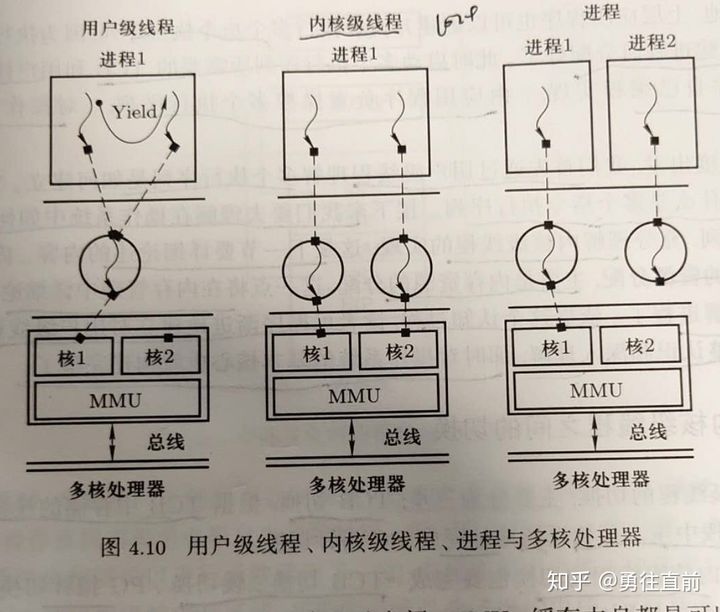 所以线程的创建,消息传递,调度,保存/恢复上下文都有线程库来完成。内核感知不到多线程的存在。内核继续以进程为调度单位,并且给该进程指定一个执行状态(就绪、运行、阻塞等)。