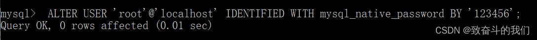 ALTER USER 'root'@'localhost' IDENTIFIED WITH mysql_native_password BY ‘123456’;
